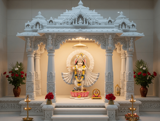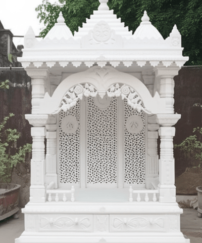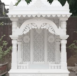 Transform your pooja ghar with beautifully carved marble from skilled artisans using premium materials.